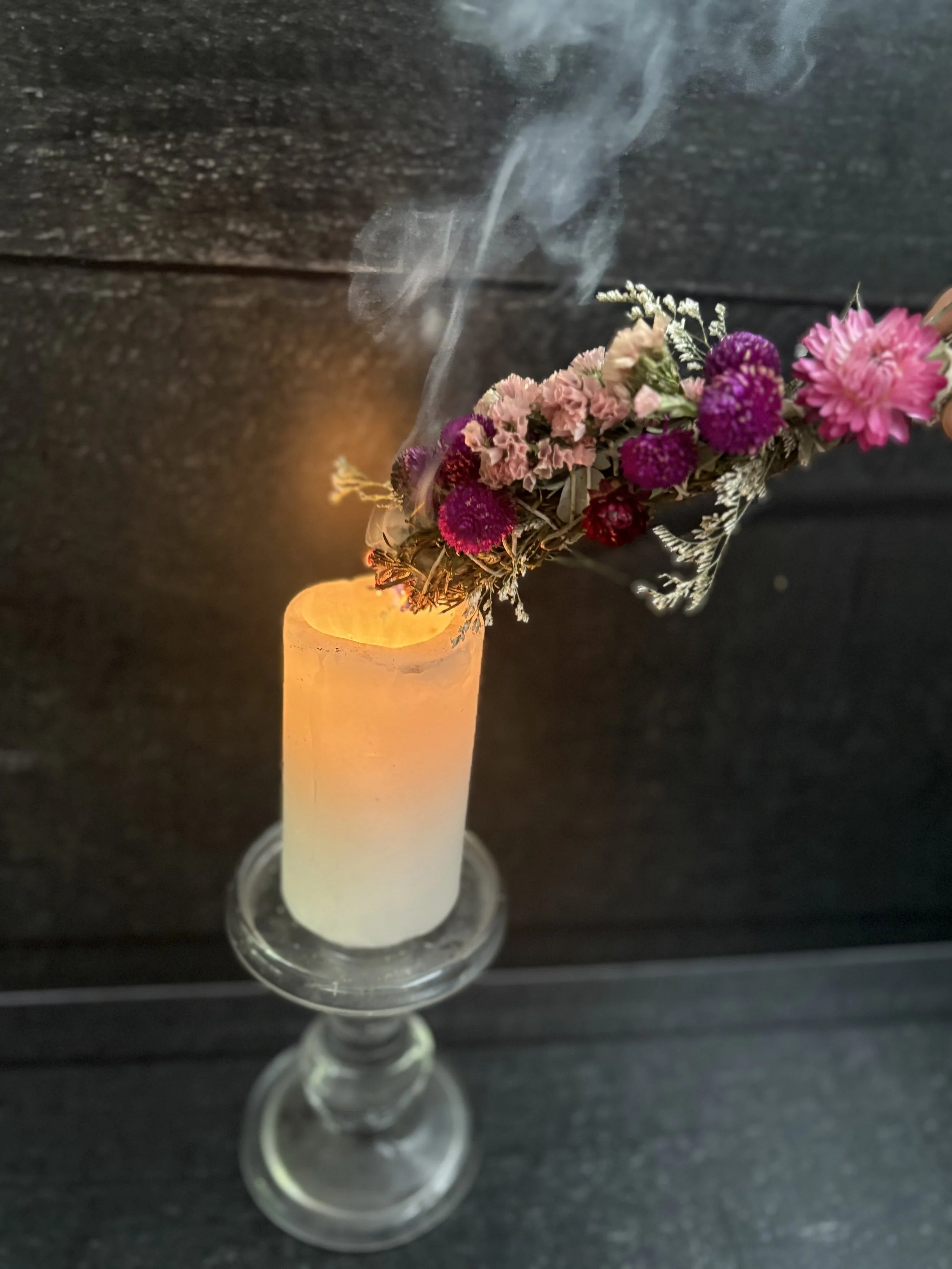 An immersive floral ritual combining grounding practice and botanical crafting. You'll create your own smudge wand using seasonal herbs, homegrown blooms, and natural fibres, perfect for personal ceremony or gifting. This session may include a guided meditation or sound bath to deepen the experience.